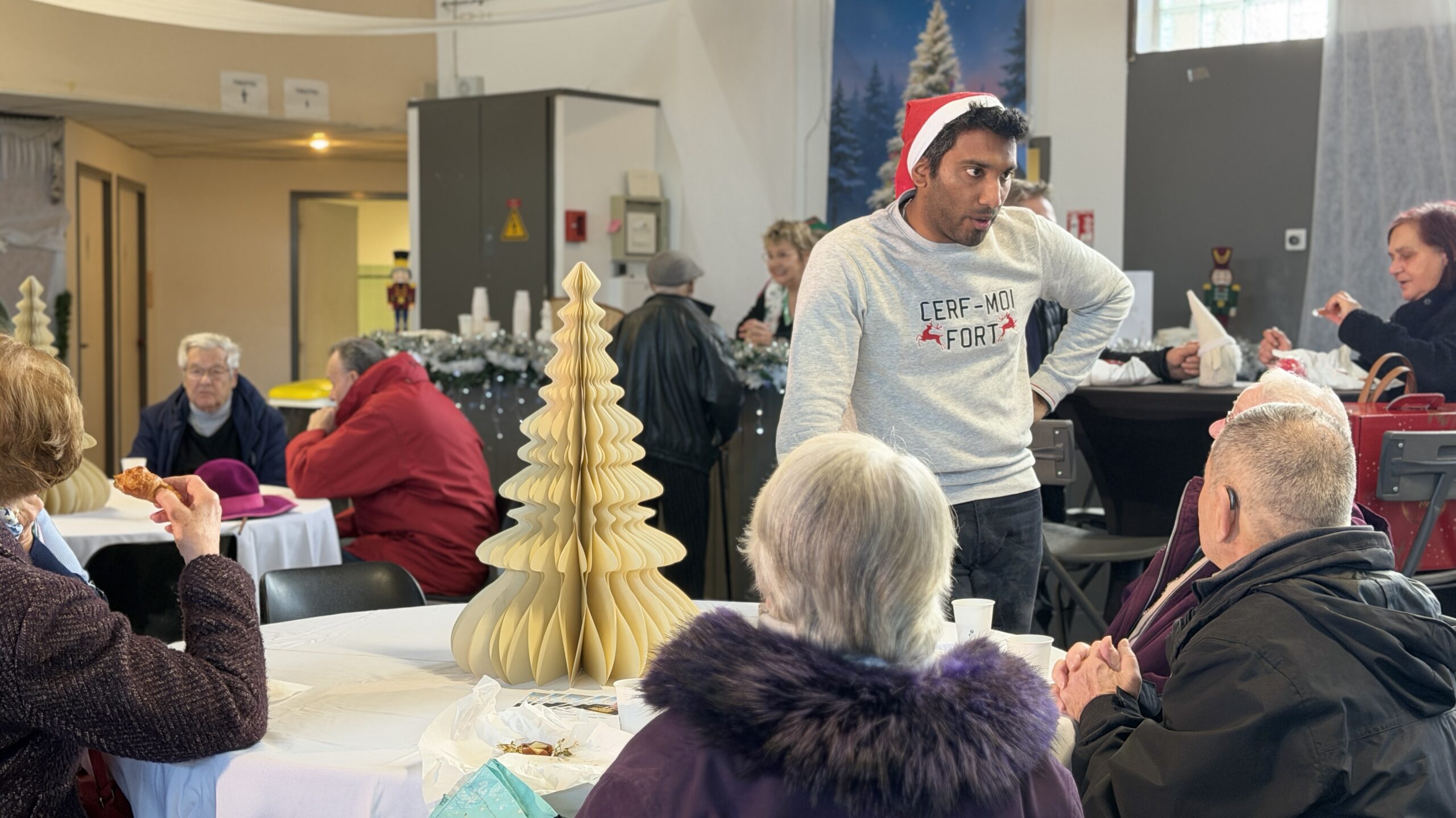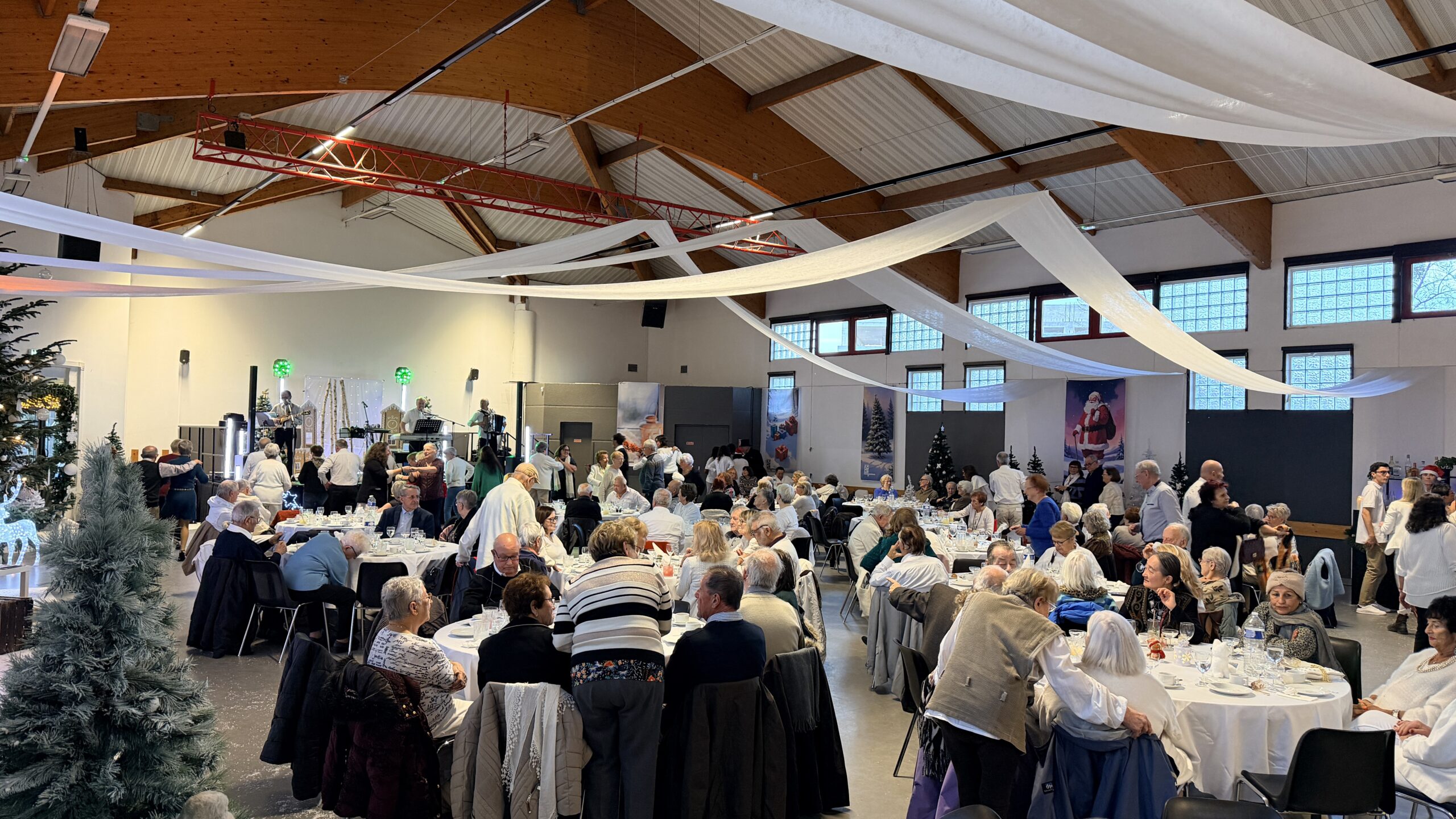La magie de Noël s’est installée à la salle Anne Frank à l’occasion de la distribution des colis solidaires aux seniors de la Ville. Après le premier jour de remise des colis, le samedi après-midi, place au traditionnel thé dansant, revisité aux couleurs féériques d’un Noël blanc. Gourmandises, bar à cocktails, magie, photobooth et orchestre ont rythmé cet après-midi festif, offrant aux participants un moment chaleureux et joyeux sur la piste de danse comme autour des tables.
